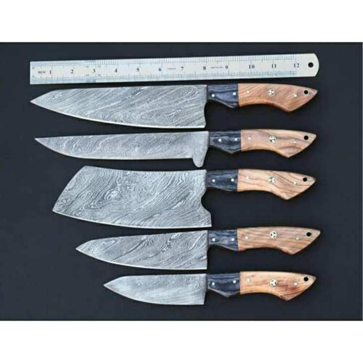 Handmade Damascus Steel Kitchen Knife Set | Premium Wooden Handle Chef Knives | Artisan Cutlery | Sharp Durable Blades | Gift for Cooks