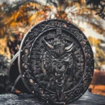 • Premium Materials: Crafted from pure steel and reinforced with high-quality leather, our shields are built to withstand the rigors of battle while maintaining an authentic Viking aesthetic.