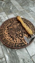 Handmade Medieval Viking Shield, Fenrir Wood Carved Viking Gifts, Viking Wall Decor,Viking Round Shield,Christmas Gifts,Weddding Gift