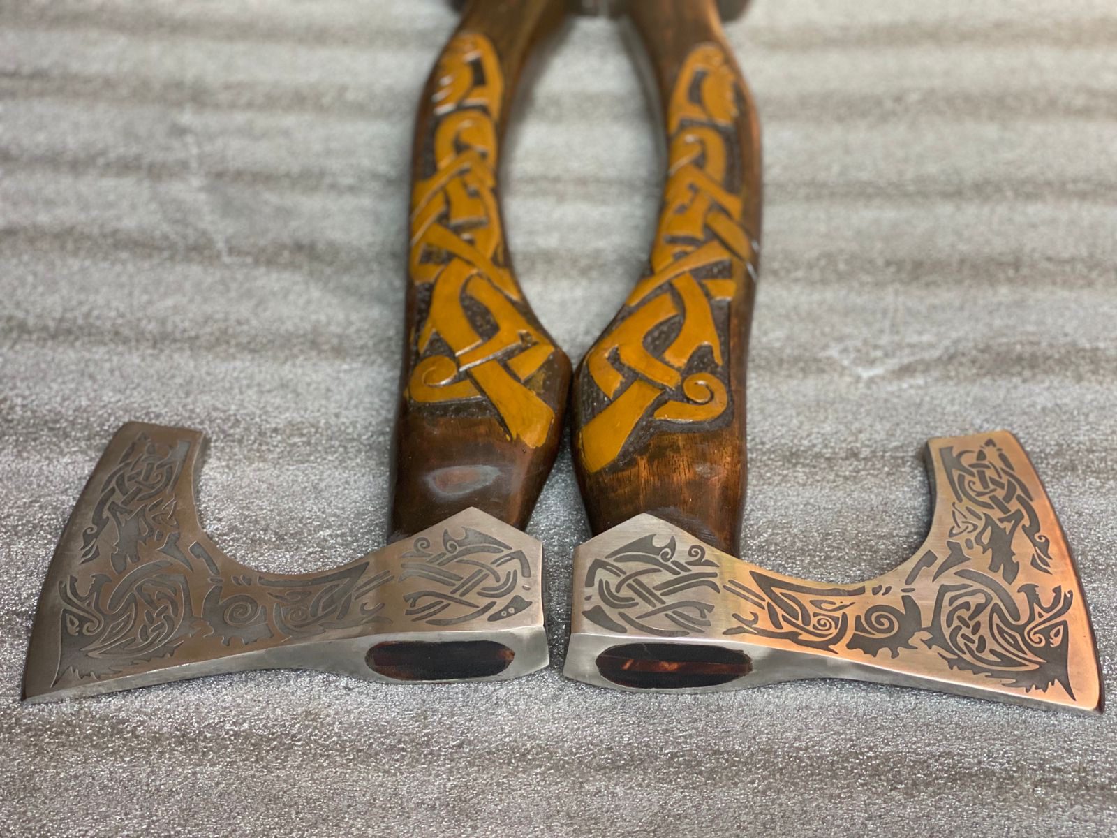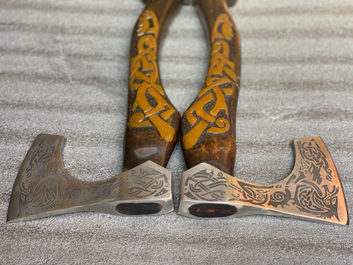 Custom Engraved Viking Axes: Celtic Knotwork Wood Carving Set