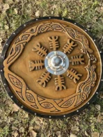 - Historical Accuracy: Our shields are designed to replicate the traditional Viking round shields, complete with a steel boss in the center and leather-wrapped edges for added durability and grip.